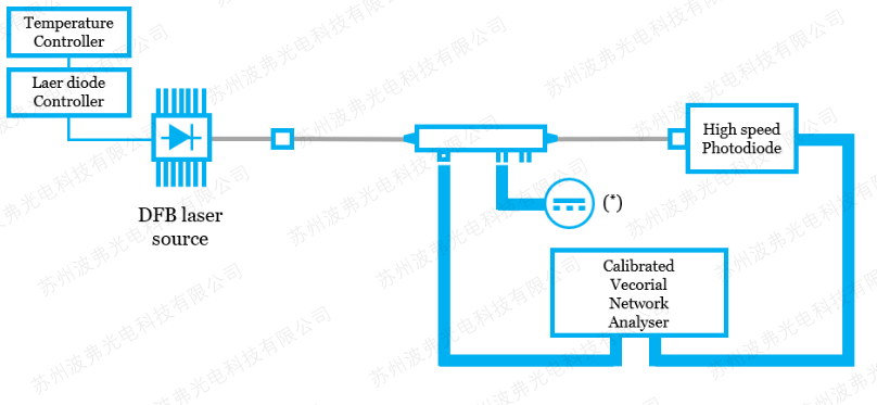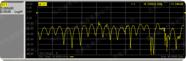 S11是電回損,定義為射頻電信號從調(diào)制器RF端口反射會信號源的比例(dB表示)。S21定義為注入調(diào)制器射頻端口的電信號-3dB高頻截至帶寬。調(diào)制器的RF射頻端的高頻效率通常由電回損和電光帶寬決定,用高速儀器比如光電探測器和矢量網(wǎng)絡(luò)分析儀可測量出這些參數(shù)。強度調(diào)制器需要設(shè)置在正確的直流偏壓點,并且輸入射頻弱信號(S11一般0dBm數(shù)量級,S21一般-15dBm數(shù)量級),S11需要記錄它在整個頻率段的最大數(shù)值,S21測量時網(wǎng)絡(luò)分析儀和高速光探測器需要被校準和去嵌,以確保測量出的電光帶寬僅僅是調(diào)制器本身的。