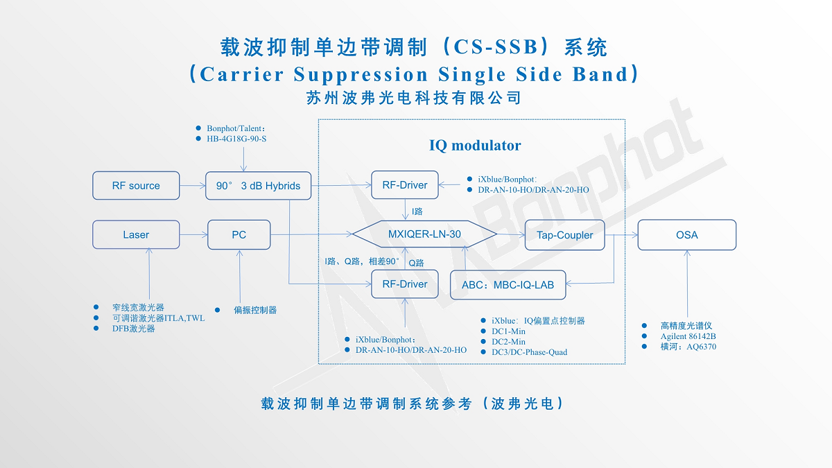 目前蘇州leyu集團(tuán)光電科技有限公司提供的基于法國(guó)iXblue公司的高消光比IQ調(diào)制器(MXIQER)、配合我們提供的驅(qū)動(dòng)(DR-AN-10-HO/DR-AN-20-HO)以及偏置控制器(MBC-IQ-LAB-A1),可以實(shí)現(xiàn)>30dB(1000:1)載波抑制比,具有無可比擬的性能及優(yōu)勢(shì)。
