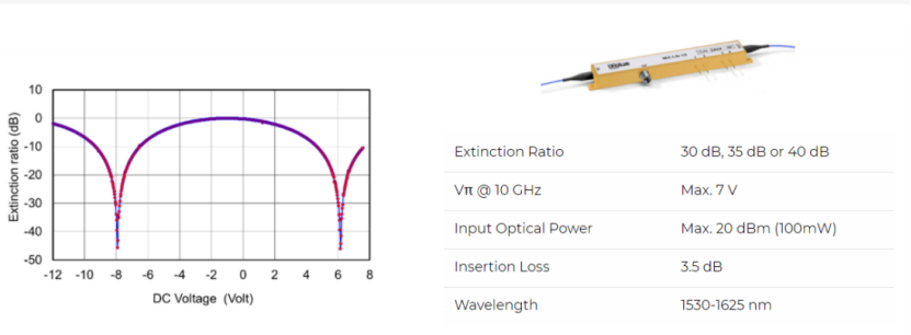 1550nm波段,10GHz/20GHz高消光比強度調制器(ER> 30,35,40dB) |