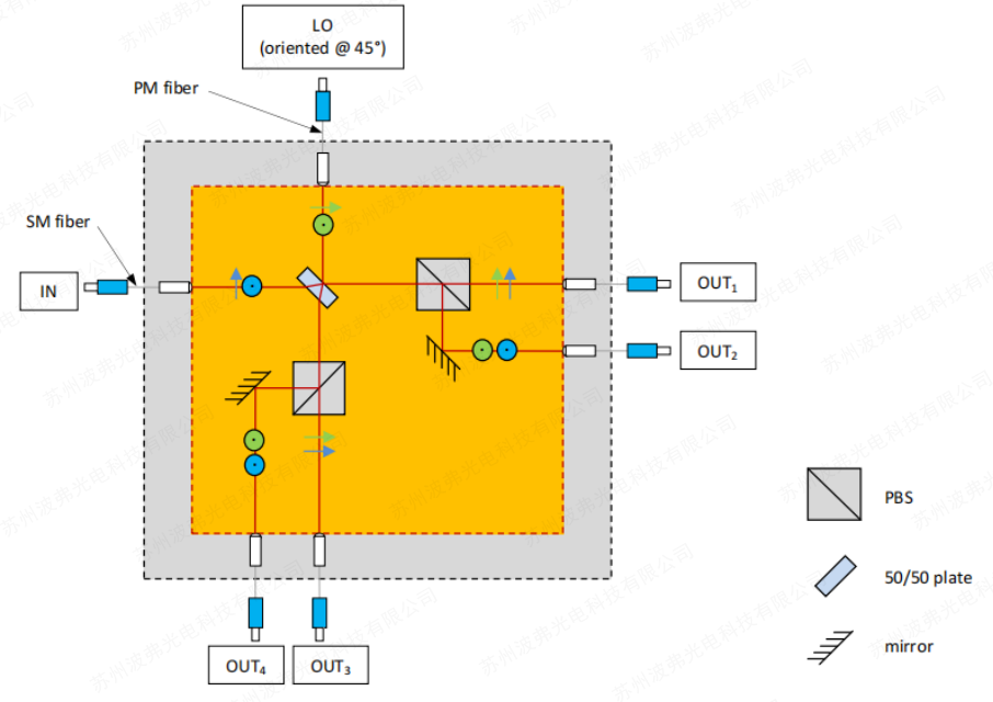 對于所有這些光混頻器產品,輸出可以選擇使用PER為20dB保偏光纖(PMF)。