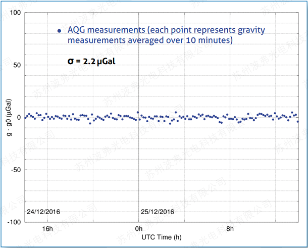這個(gè)不間斷的時(shí)間序列已經(jīng)持續(xù)了一個(gè)月,并顯示了當(dāng)?shù)氐某毕.?dāng)數(shù)據(jù)長(zhǎng)期平均時(shí)持續(xù)時(shí)間,AQG 提供無(wú)漂移的亞 μGal 穩(wěn)定性。