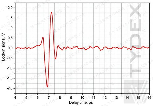 信號(hào)光束通過光學(xué)延遲線,然后由反射鏡系統(tǒng)聚焦到同一個(gè)EOD晶體中。EOD信號(hào)(TDS系統(tǒng)直接測量太赫茲脈沖的電場)由同樣控制延遲線的軟件接收。 該軟件包括將EOD信號(hào)轉(zhuǎn)換為頻譜的數(shù)學(xué)裝置。