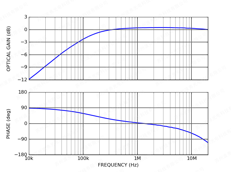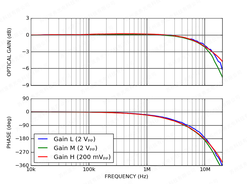 交流調(diào)制輸入可用于調(diào)制100 kHz以上的激光,調(diào)制增益為20 mA/V: